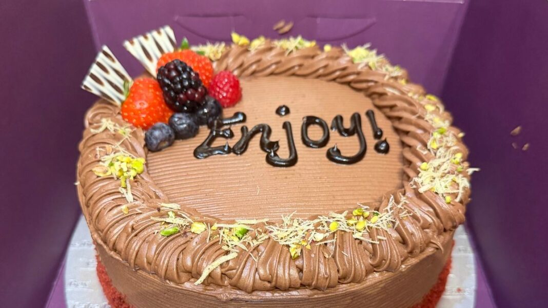 One of the standout offerings is the Red Velvet Dubai Chocolate Cake, which features a red velvet sponge layered with pistachio cream and a signature Dubai mix, topped with Nutella piping, suter pheni, pistachios, and fresh berries. The cake can also be personalized for a special touch on any occasion.