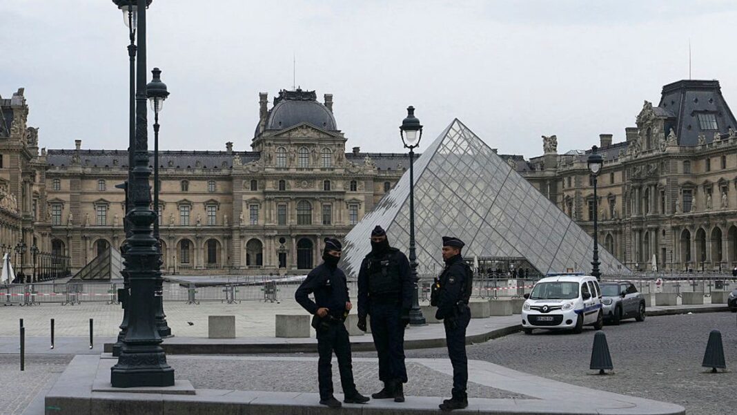 A daring heist took place at the renowned Louvre museum in central Paris, where historic crown jewels valued at £76 million were stolen in a seven-minute operation. Investigators now suspect it may have been an inside job, as evidence suggests collaboration between a museum security guard and the thieves. The robbers used a furniture lift to access the jewels, dropping one piece during their escape. Two suspects have been arrested, with one apprehended at the Paris airport. The Louvre director offered to resign due to security failures, sparking national outrage. Recovery of the stolen items seems unlikely. French officials have launched inquiries to address the security breach.