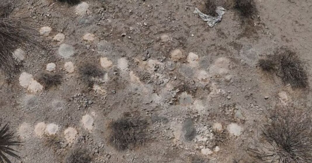 Initially, approximately 70 sets of ashes were discovered on a dirt road, with photos depicting the ashy masses grouped together against a backdrop of cacti and rugged hills.