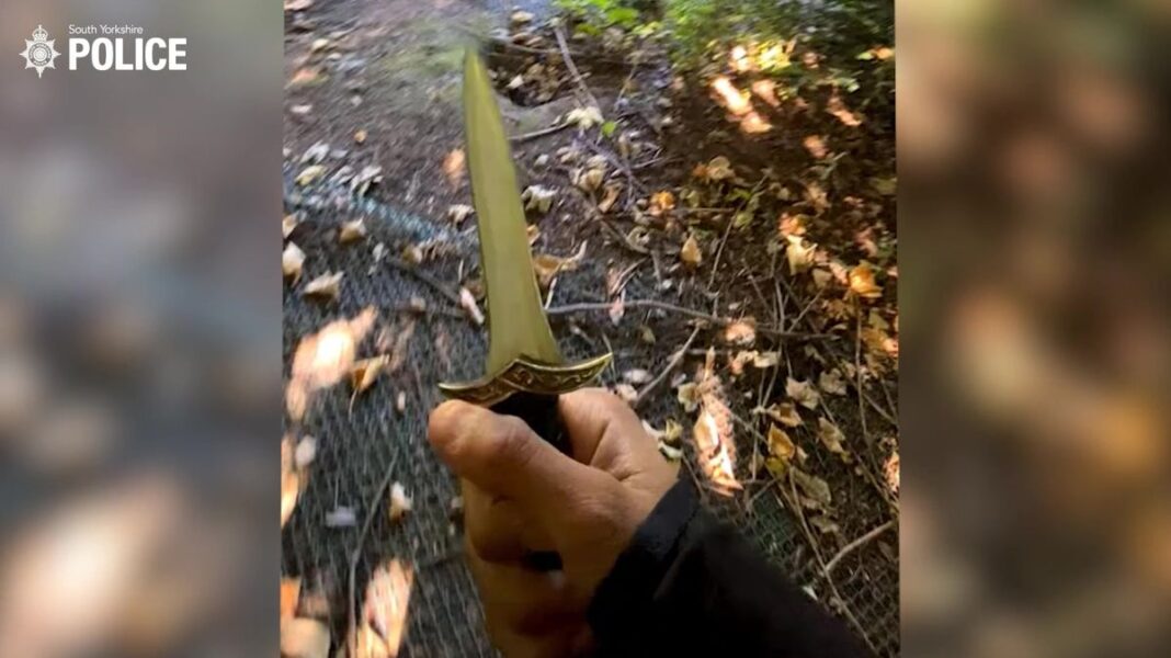 Teenager Mohammed Umar Khan was captured on disturbing new footage handling a knife before fatally stabbing fellow student Harvey Willgoose. The video shows Khan brandishing a ‘AC-style’ blade in a park-like setting while music played. Tragically, he later used a 13cm hunting knife to stab Harvey twice in the chest during a lunch break at All Saints Catholic High School in Sheffield.